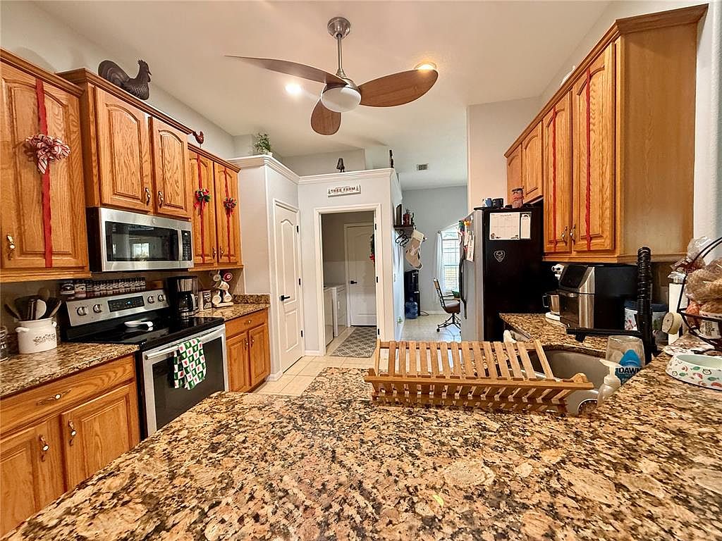 ****FOR SALE****Enjoy waterfront living in this three-bedroom, two-bath, two-car garage pool home, located on the Blue Ridge freshwater canal in North Port. This split floor plan features ceramic tile throughout and includes a den with French doors that can be used as a fourth bedroom, home office, or flex space. The kitchen features granite countertops and opens to a bright breakfast nook with a large picture window overlooking the heated saltwater pool. There is also a formal dining area. Step outside to the pool area, ideal for entertaining or simply unwinding while taking in peaceful canal views. The private dock makes it easy to fish from your backyard or enjoy quiet moments by the water. Conveniently located just minutes from dining, shopping, and easy access to the interstate. New HVAC installed September 2025.