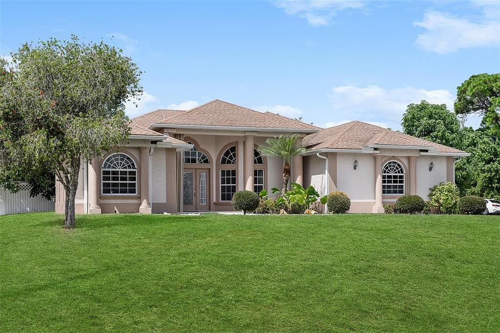 ****FOR SALE****Welcome Home to this Beautiful North Port Pool Retreat! Discover this custom-built, well-maintained 3-bedroom, 2-bath home nestled on a quiet, nicely paved street — and best of all, not in a flood zone. This home is located in a prime area of North Port, offering convenient access to US-41, I-75, beaches, shopping, restaurants, fishing spots, the Legacy Bike Trail only 2 minutes away, Warm Mineral Springs six minutes away, CoolToday Park, Wellen Park, and the North Port Aquatic Center. With no HOA, deed restrictions, or CDD fees, you’ll enjoy true Florida freedom! Step inside to an inviting bright, open floor plan with high tray ceilings, elegant crown molding, gorgeous hardwood flooring, and plenty of natural light throughout. The spacious master suite features sliding doors leading to the lanai and pool area, two walk-in closets, and a luxurious en-suite bath with dual vanities, a soaking tub/jacuzzi, and a walk-in shower. The kitchen is a chef’s delight with stainless steel appliances, granite countertops and a breakfast bar that opens to the main living area — perfect for entertaining. Enjoy outdoor living on the screened lanai with a refreshing pool and ample space for gatherings or relaxing in the Florida sunshine. This home also includes thoughtful upgrades such as accordion hurricane shutters (lock up and travel worry-free), an epoxy-coated garage floor, a complete gutter package, a laundry room with utility sink, fenced in yard and an outdoor shed for your gardening tools. Don’t miss the chance to make this dream home your own — schedule your showing today!