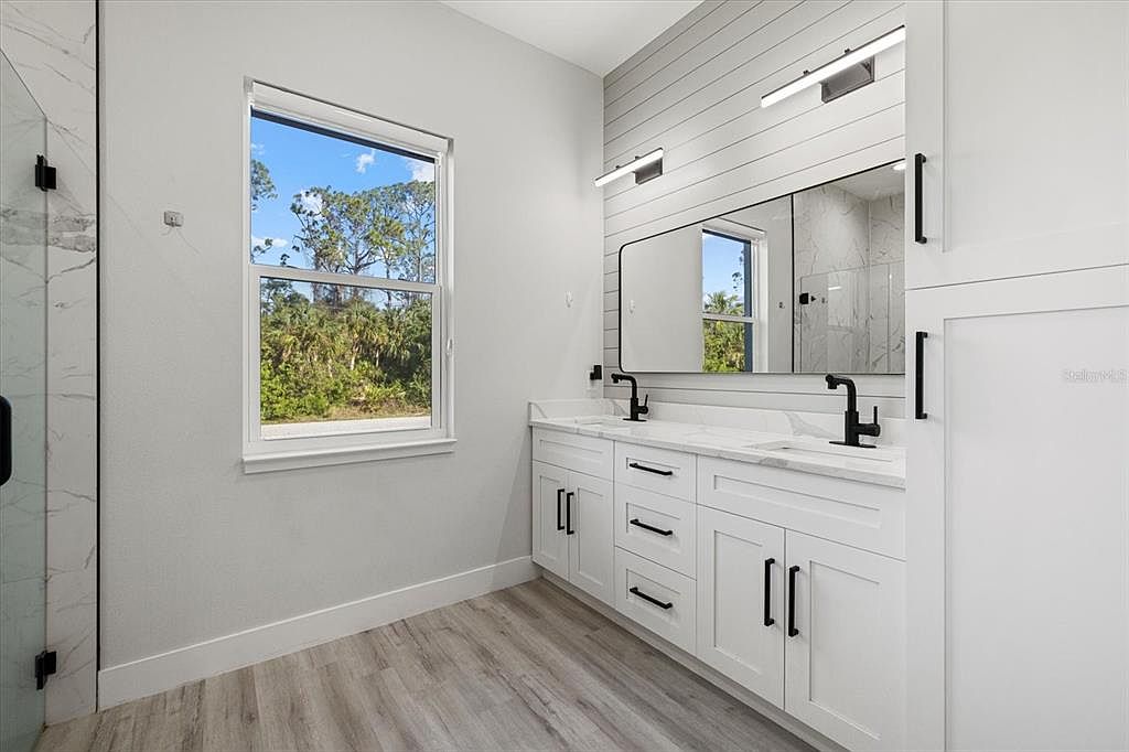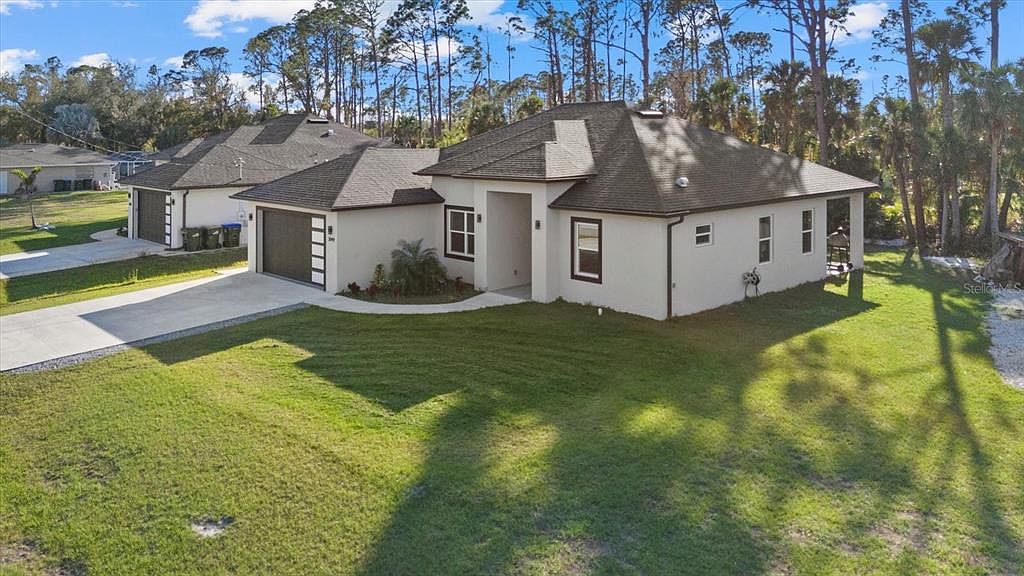 ****PENDING SALE****This stunning 2022 CUSTOM-BUILT HOME offers expansive living across 2,648 total square feet and 1,826 heated square feet, perfectly positioned on an OVERSIZED LOT with ample space for RV or BOAT PARKING. Embrace the Florida lifestyle with this OPEN CONCEPT design, featuring THREE BEDROOMS, a flexible DEN/OFFICE, TWO FULL BATHROOMS, and a SPACIOUS TWO-CAR GARAGE. This home is equipped with premium upgrades including, IMPACT WINDOWS AND DOORS, whole house REVERSE OSMOSIS water filtration system, WATERPROOF LUXURY VINYL FLOORING, tall 8” DOORS and stylish TALL BASEBOARDS. The gourmet kitchen features SOLID WOOD CABINETS WITH SOFT-CLOSE FUNCTIONALITY, QUARTZ COUNTERTOPS with a WATERFALL feature on the island, PANTRY CLOSET and CONTEMPORARY LIGHTING FIXTURES. The interior is distinguished by HIGH CEILINGS, with additional TRAY CEILINGS adding elegance to the living and primary bedroom area. Each room is equipped with CEILING FANS for added comfort, and the home includes a LARGE LAUNDRY ROOM with a SINK. The primary suite is a true retreat, complete with CUSTOM CABINETS in the WALK-IN CLOSETS, a DOUBLE VANITY, and a LUXURIOUS WALK-IN SHOWER. Expansive SLIDING DOORS from both the living room and master bedroom lead out to an IMPRESSIVE 27-FOOT BACK PORCH/LANAI, ideal for relaxation or entertaining. The tasteful COLOR PALETTE throughout the home enhances its MODERN APPEAL. Bring your toys! The oversized lot .29 of an acre gives you plenty of space to park them. The home is offered partially furnished. Located in a highly desirable area of North Port, this property is close to the renowned MINERAL SPRINGS, North Port's AQUATIC CENTER, as well as local schools, shopping, and dining options. Beautiful SANDY BEACHES are only a short drive away. Don't miss the chance to make this exquisite house your new home. Schedule your private showing today!